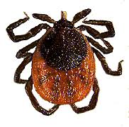 La garrapata chupa sangre hasta llenarse.Ixodoidea (Redirigido desde Garrapata) ? Ixodoidea Ixodes ricinus, la garrapata común Clasificación científica Reino: Animalia Filo: Arthropoda Clase: Arachnida Subclase: Acari Orden: Ixodida Superfamilia: Ixodoidea C. L. Koch, 1844 Familias Ixodidae Argasidae Nuttalliellidae Los ixodoideos (Ixodoidea) son una superfamilia de ácaros, conocidos vulgarmente como garrapata s. Son ectoparásitos hematófagos (se alimentan de sangre) y son vectores de numerosas enfermedades infecciosas entre las que destacan el tifus o la enfermedad de Lyme. Son los ácaros de mayor tamaño. Contenido [ocultar] 1 Biología 2 Picaduras de garrapatas 3 Falsa creencia común sobre las garrapatas 4 Enfermedades transmitidas por garrapatas 5 Enlaces externos 6 Véase también [editar] Biología Ciclo biológico de una garrapata. Las garrapatas se encuentran a menudo en la hierba alta, donde esperan en el extremo de una hoja para intentar engancharse a cualquier animal que pase. Una idea falsa muy común es pensar que la garrapata es capaz de saltar de la planta al huésped, pero el único método de transmisión es el contacto directo. Pueden esperar semanas o incluso meses antes de hallar un huésped adecuado. Cuando se encuentran con uno apropiado trepan sobre él (algunos se dejan caer desde la vegetación alta), y por medio de sus quelíceros, perforan la piel y empiezan a succionar sangre; su cuerpo se hincha y cuando está lleno, la garrapata se suelta. Los Ixodidae atacan a numerosos mamíferos, incluido el hombre, y los Argasidae parasitan sobre todo a aves. [editar] Picaduras de garrapatas Cabeza de Ixodes ricinus La garrapata se termina soltando del animal cuando se llena, pero esto puede tardar varios días. En su boca, las garrapatas tienen una estructura que les permite engancharse firmemente al lugar del que están chupando sangre. Lo primero que hay que aclarar es que la mayoría de las picaduras de garrapatas son inofensivas, no conllevan la transmisión de gérmenes patógenos; además, aunque inoculen gérmenes, la mayoría de las veces no se manifiestan síntomas de la enfermedad. Eso sí, una vez detectada la garrapata se debe retirar lo antes posible, sin precipitación, pero sin dejar pasar tiempo innecesario. Se deben descartar métodos tradicionales como el uso de alcohol, aceite, vaselina, petróleo, esmalte de uñas u otros productos, porque crean una especie de película alrededor de la garrapata que impide que respiren, lo que parece acelerar la regurgitación de sangre. Tampoco deben cortarse, quemarse y sobre todo no se debe tirar con los dedos aplastando su cuerpo, pues en este momento podría producirse la inoculación de fluidos infecciosos desde la garrapata hacia el cuerpo del hospedador. La forma correcta de retirarla es usando unas pinzas, de punta estrecha, a ser posible curvadas, con las que sujetaremos la garrapata por su zona bucal, lo más cerca posible de la piel del hospedador, evitando aplastar el cuerpo. A continuación realizar una tracción continua y lenta (podría llevarnos casi un minuto), progresiva, sin excesiva fuerza, nunca bruscamente, en perpendicular a la piel hasta conseguir su extracción. Nunca retorcer la garrapata. Si alguna parte del aparato bucal de la garrapata queda en el interior de la piel, usar la hoja de un bisturí o una aguja para extraer los restos; en cualquier caso si quedara algún cuerpo extraño lo normal es que pasados unos días fueran expulsados por nuestro cuerpo. Aunque la mayoría de las picaduras de garrapata son inofensivas, estas pueden propagar una enfermedad recientemente identificada como enfermedad de Lyme causada por la Borrelia burgdorferi. Esta enfermedad causa artritis, trastornos del corazón y del sistema nervioso como encefalitis o meningitis. La época de mayor riesgo para contraer esta enfermedad es al final de la primavera y el inicio del verano. Los síntomas por los que se identifica esta enfermedad son similares a los de una gripe común (fiebre, dolor muscular, malestar general, cefalea y fatiga), precedidos de un "eritema crónico migrans" (mancha rojiza circular o sarpullido) como primer signo de la enfermedad. El diagnóstico se realiza mediante una demostración de anticuerpos frente a la Borrelia burgdorferi. El tratamiento suele ser tetraciclina o penicilina; macrólidos. Es necesario tratar esta enfermedad a la mayor brevedad, ya que incluso el 15% de los pacientes que reciben tratamiento inmediato sufren complicaciones. En ocasiones esta enfermedad es confundida con artritis reumatoide, meningitis o esclerosis múltiple. [editar] Falsa creencia común sobre las garrapatas Conviene aclarar que, a pesar de que comúnmente en los medios e, incluso, muchas veces en ámbitos científicos como la Medicina, se las menciona erróneamente como «insectos», las garrapatas no son insectos, sino arácnidos (parientes lejanos de las arañas). La manera más fácil de distinguir entre insectos y arácnidos es que, mientras que los primeros tienen seis patas (y muchas especies son capaces de volar), los últimos tienen ocho y son incapaces de volar. .... [editar] Enfermedades transmitidas por garrapatas Tularemia Rickettsia Fiebre botonosa mediterránea Enfermedad de Lyme Tifus Fiebre de las Montañas Rocosas Louping-ill Meningoencefalitis por garrapatas Hepatozoonosis canina Enfermedad de Kyasanur Fiebre del Colorado por garrapatas Babesiosis Fiebre bovina por garrapatas Fiebre hemorrágica de Crimea-Congo Fiebre reincidente [editar] Enlaces externos Wikimedia Commons alberga contenido multimedia sobre Ixodoidea. Varios instrumentos para quitar garrapatas (inglés) Ixodoidea Que Hago si mi Perro Tiene Garrapatas? [editar] Véase también Ácaros de la cosecha Categoría: Acari Registrarse/EntrarArtículoDiscusiónLeerEditarVer historial Portada Portal de la comunidad Actualidad Cambios recientes Páginas nuevas Página aleatoria Ayuda Donaciones Notificar un error Imprim